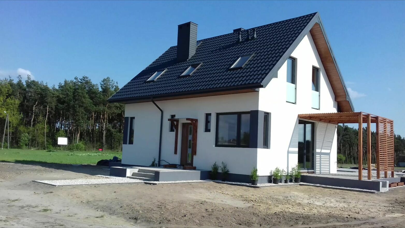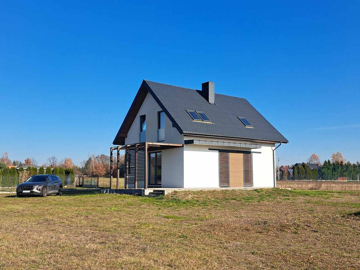Dom ogrzewany pompą ciepła w całym domu ogrzewanie podłogowe, ocieplony styropianem, pokrycie dachu - blachodachówka, okna PCV trzyszybowe